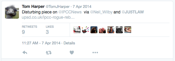 Following my appearance before HHJ Parkes at the Royal Courts of Justice there followed a stream of correspondence from Miss Slater, which became ever more bizarre as her IPCC lay clients sought removal of every reference to them ever written and published on the internet. However innocuous and whether, or not, I was author or publisher. This included tweets broadcasted by national newpaper journalists and justice campaigners. Such as this one from Sunday Times reporter, Tom Harper: