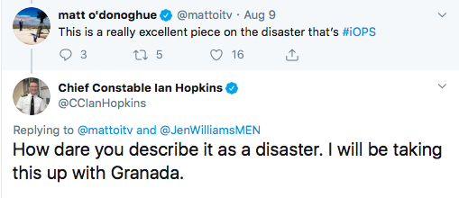 A furious chief constable, Ian Hopkins, tried to deflect criticism and play down the defects of the system known colloquially as iOPS (Integrated Operational Policing System) and monumental extra cost to the taxpayer.