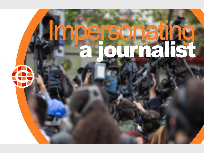 So far, there is, apparently, no criminal offence committed: Impersonating a police officer or a solicitor is directly punishable at law, but not so if a journalist is such a victim. The matter falling between the stools of the Computer Misuse Act, 1990, the Fraud Act, 2006 and the Protection from Harassment Act, 1997 (the latter may be engaged if he was asked to stop and continued the impersonation).